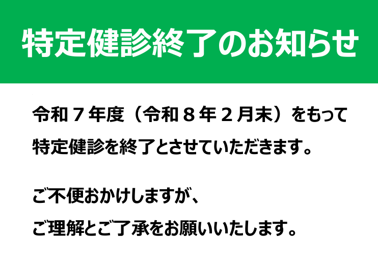 特定健診終了のお知らせ